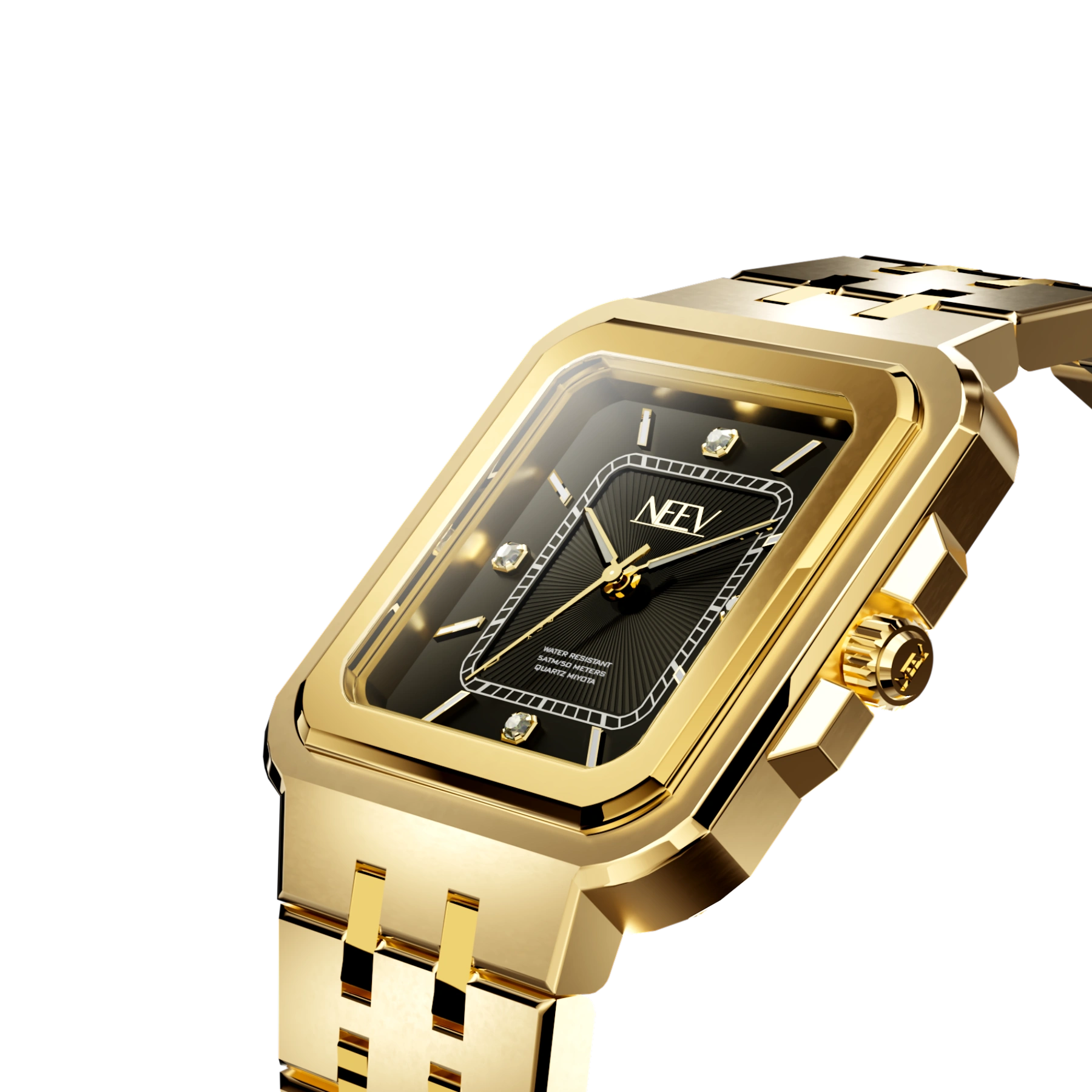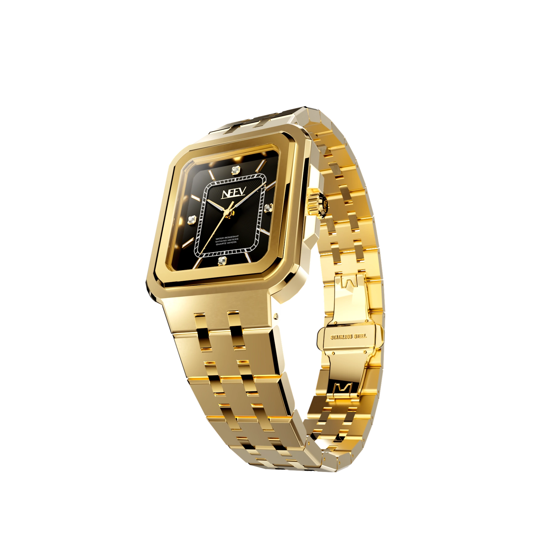 A sleek square case with smooth polished bezel, high-quality nickel-free stainless steel, AR-coated scratch-resistant sapphire crystal and water resistant to 5 ATM. In short, the ideal watch for the woman who loves minimalist class and timeless design.