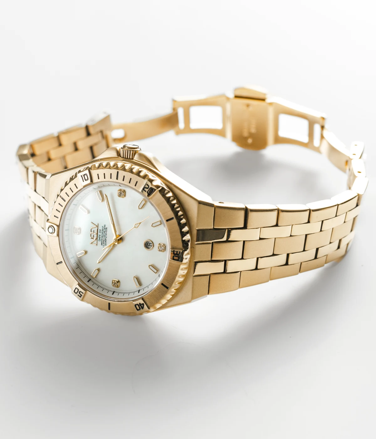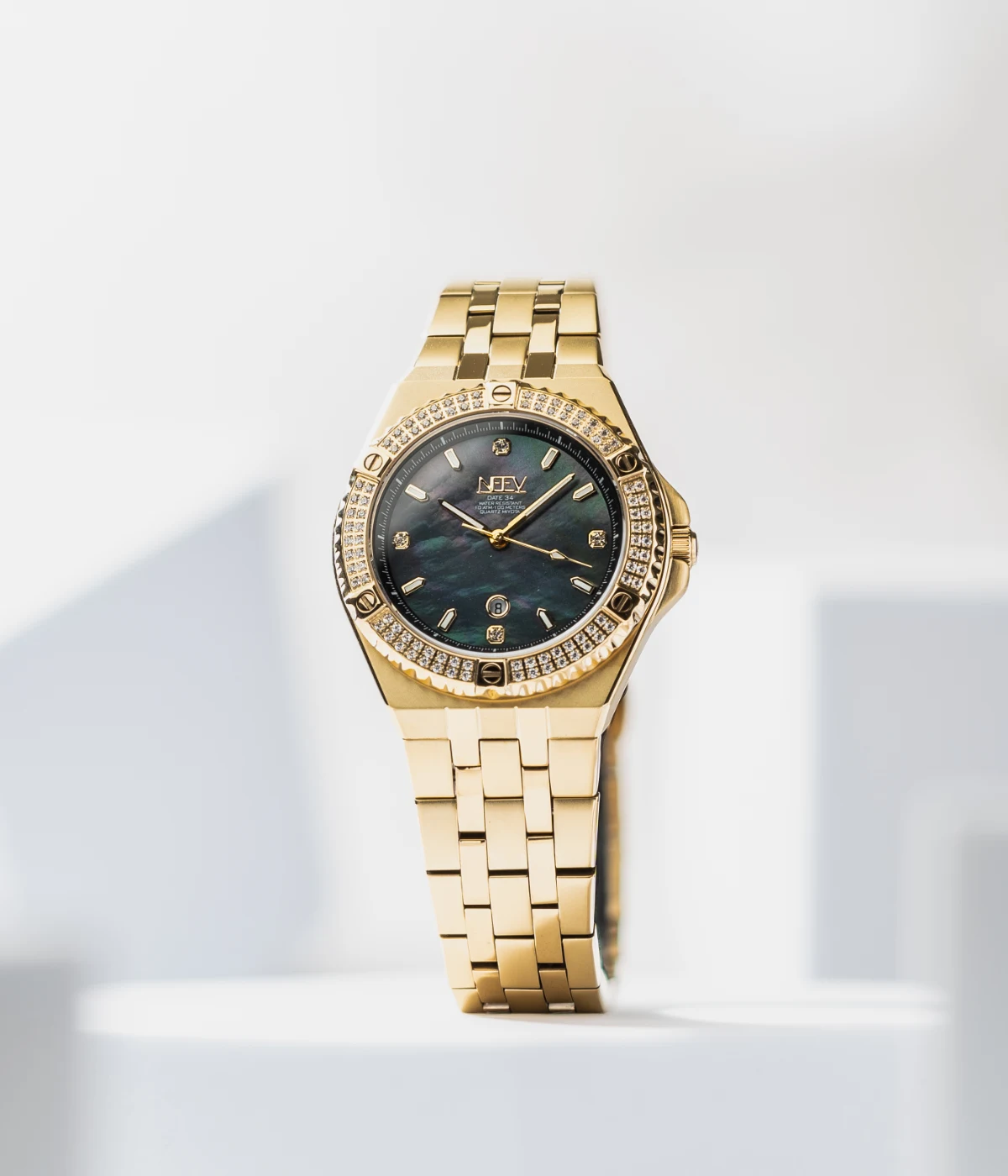 De dames collectie is bezet met hoogwaardige Swarovski kristallen, die elk horloge een luxueuze uitstraling