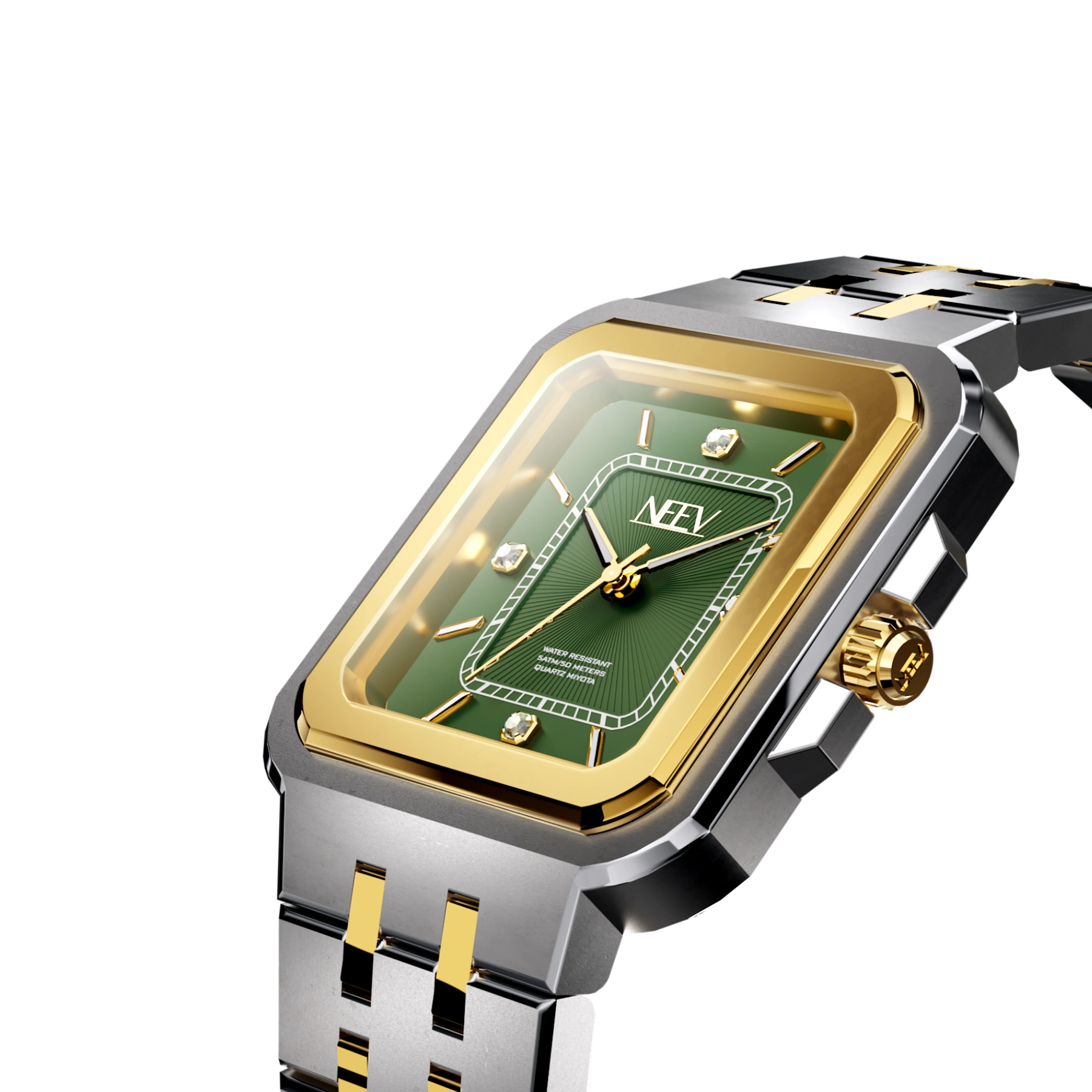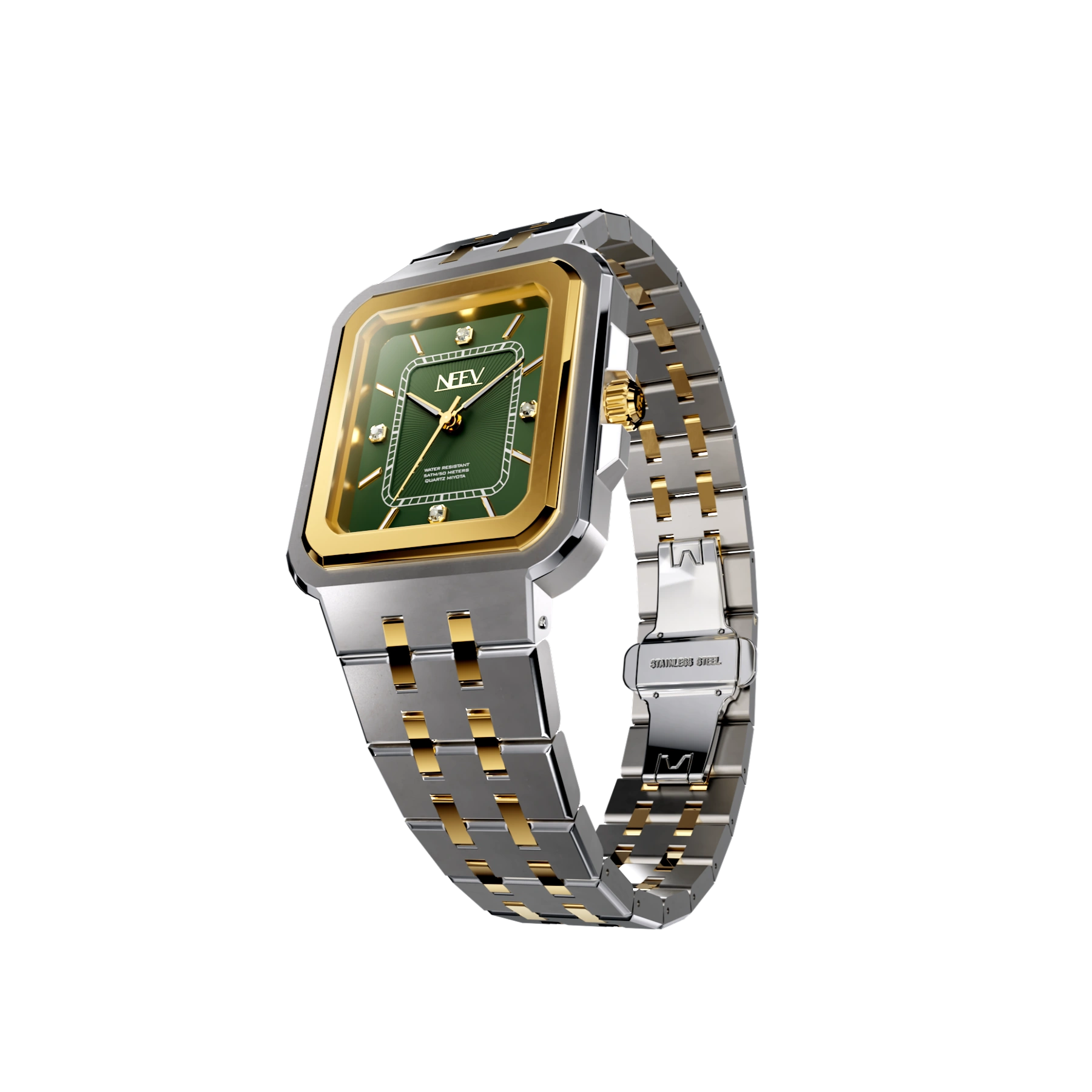 De Anna® is een opvallende verschijning met haar diepe groene wijzerplaat en luxueuze bicolor afwerking. De kast is voorzien van zirkonia, die het geheel een sprankelende rand geven. De band, gemaakt van duurzaam roestvrij staal, combineert matte en glanzende schakels waardoor het horloge een chique uitstraling krijgt.