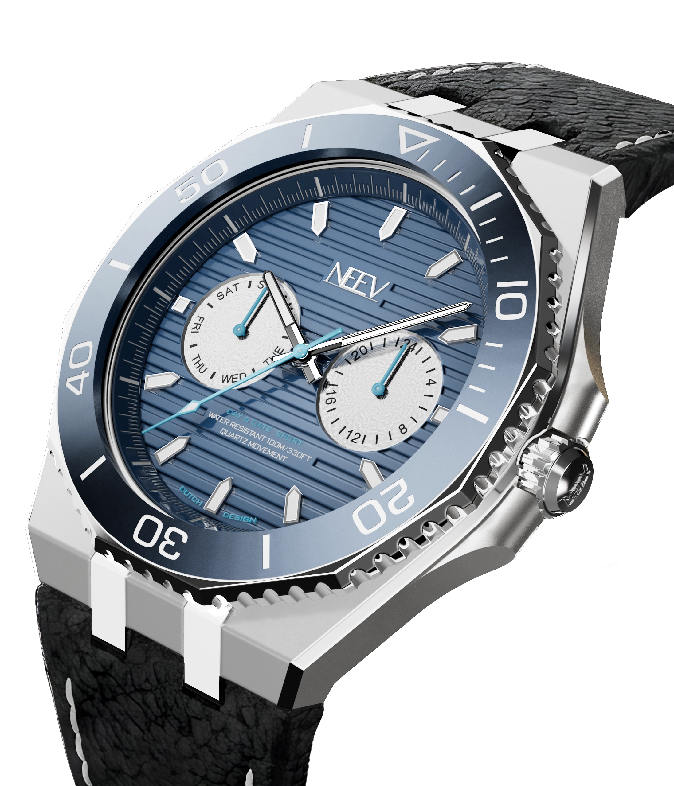 Een geschroefde kroon, waterbestendig tot 100 meter, hoogwaardig nikkelvrij staal, krasbestendig saffierglas en een betrouwbaar Japans uurwerk. Kortom, een krachtig en luxueus horloge die zijn prijsklasse overstijgt.