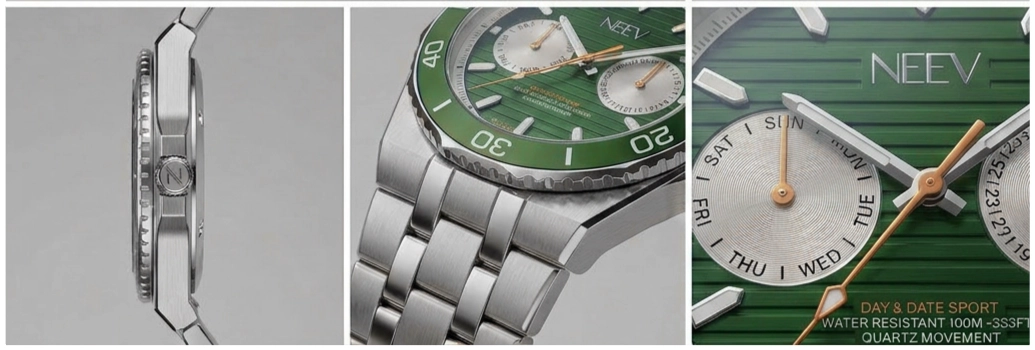 Een geschroefde kroon, waterbestendig tot 100 meter, hoogwaardig nikkelvrij staal, krasbestendig saffierglas en een betrouwbaar Japans uurwerk. Kortom, een krachtig en luxueus horloge die zijn prijsklasse overstijgt.