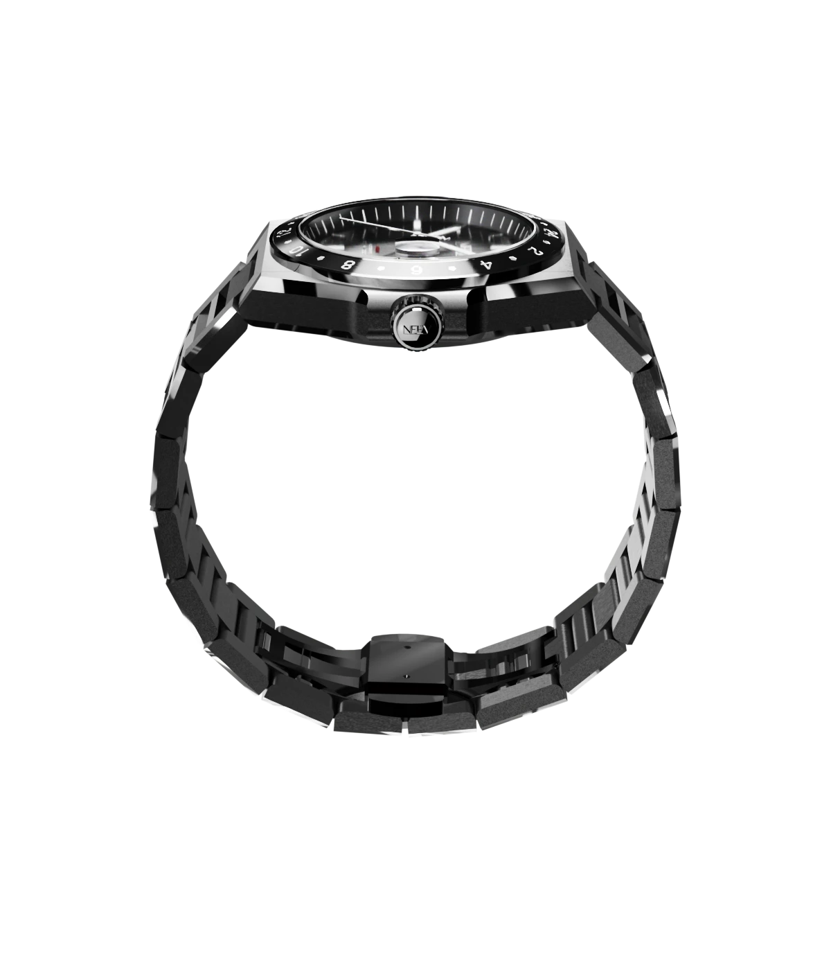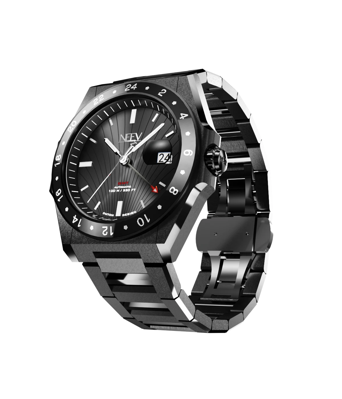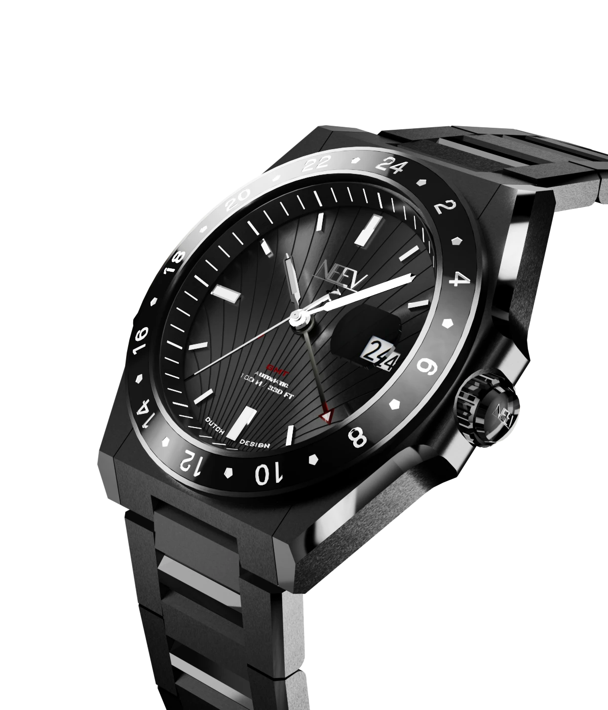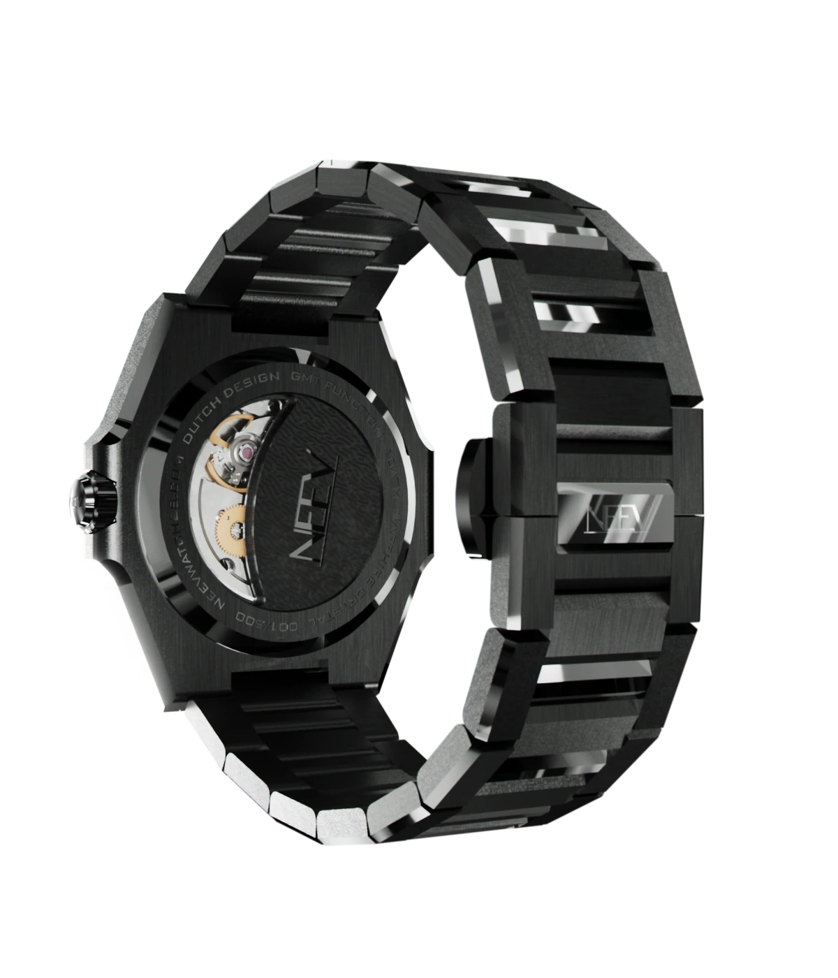 Ontdek de veelzijdigheid van dit prachtige GMT horloge. Dit stijlvolle model is ontworpen voor de reiziger die precisie en elegantie waardeert. Dit bijzonder volledig zwart gecoate GMT horloge is een unieke verschijning waarvan er slechts 75 worden gemaakt!