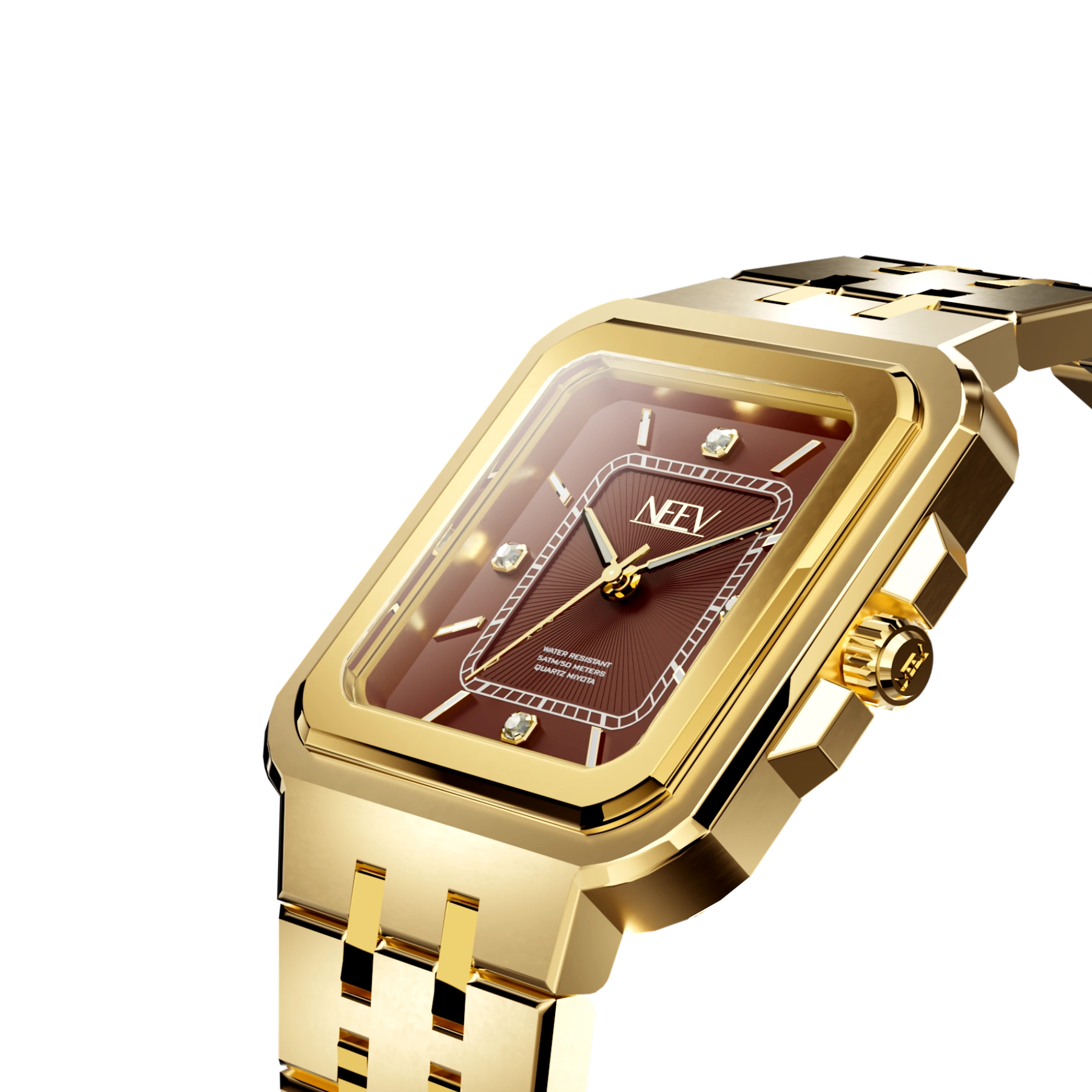 De Rosa® Polished Gold Red is een expressieve blikvanger. De dieprode wijzerplaat straalt kracht uit en wordt omlijst door een gladde goudkleurige bezel. De band is verfijnd uitgevoerd in mat en glanzend goudkleurig roestvrij staal. Met saffierglas en 5 ATM waterbestendigheid combineert dit horloge elegantie met betrouwbaarheid.