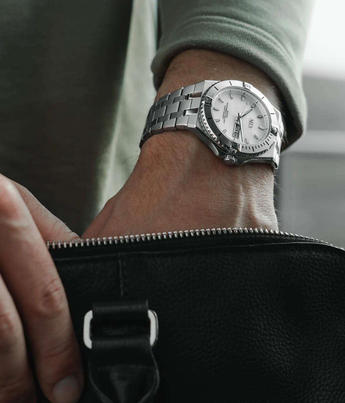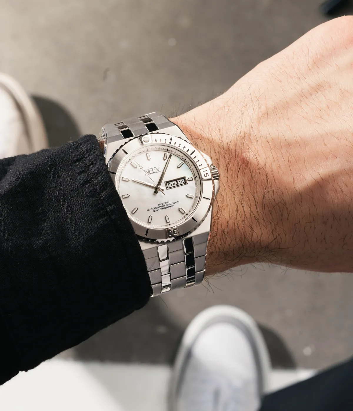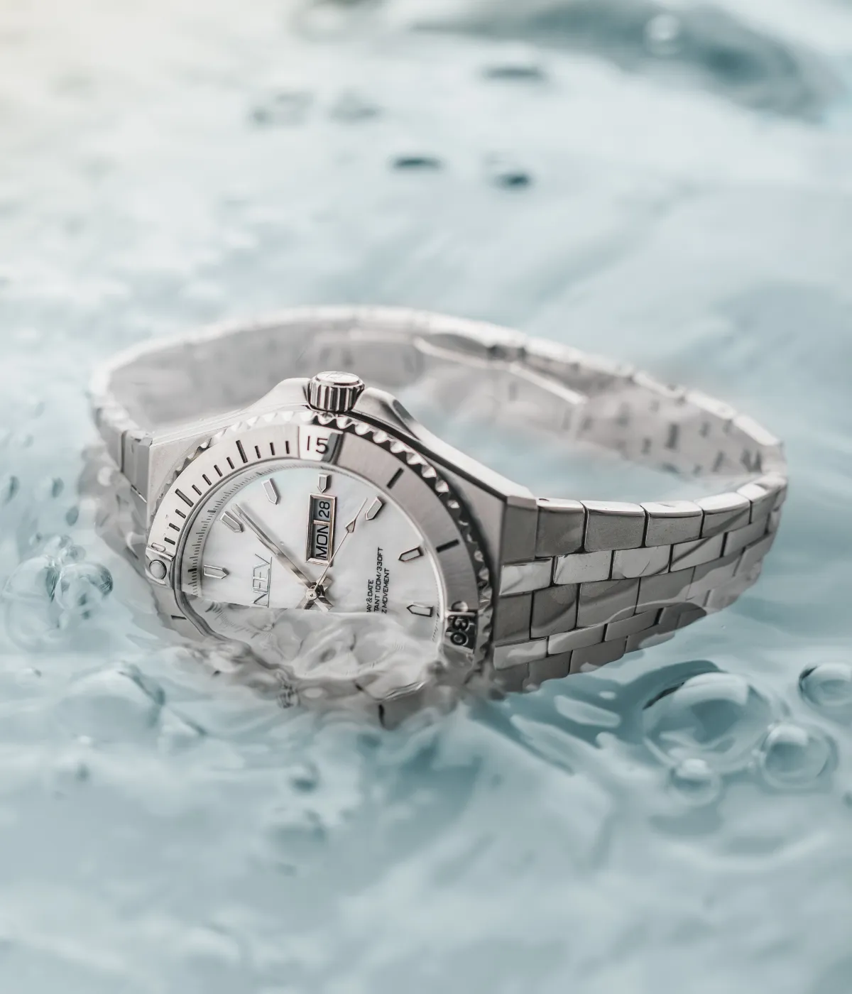 Een geschroefde kroon, waterbestendig tot 100 meter, hoogwaardig nikkelvrij staal, krasbestendig saffierglas en een betrouwbaar Japans uurwerk. Kortom, een krachtig en luxueus horloge die zijn prijsklasse overstijgt.